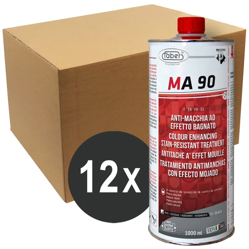 MA 90 is a solvent-based color-enhancing stain-resistant treatment; it provides a semi-polished finish to natural stones characterized by a medium or medium-high degree of absorption.